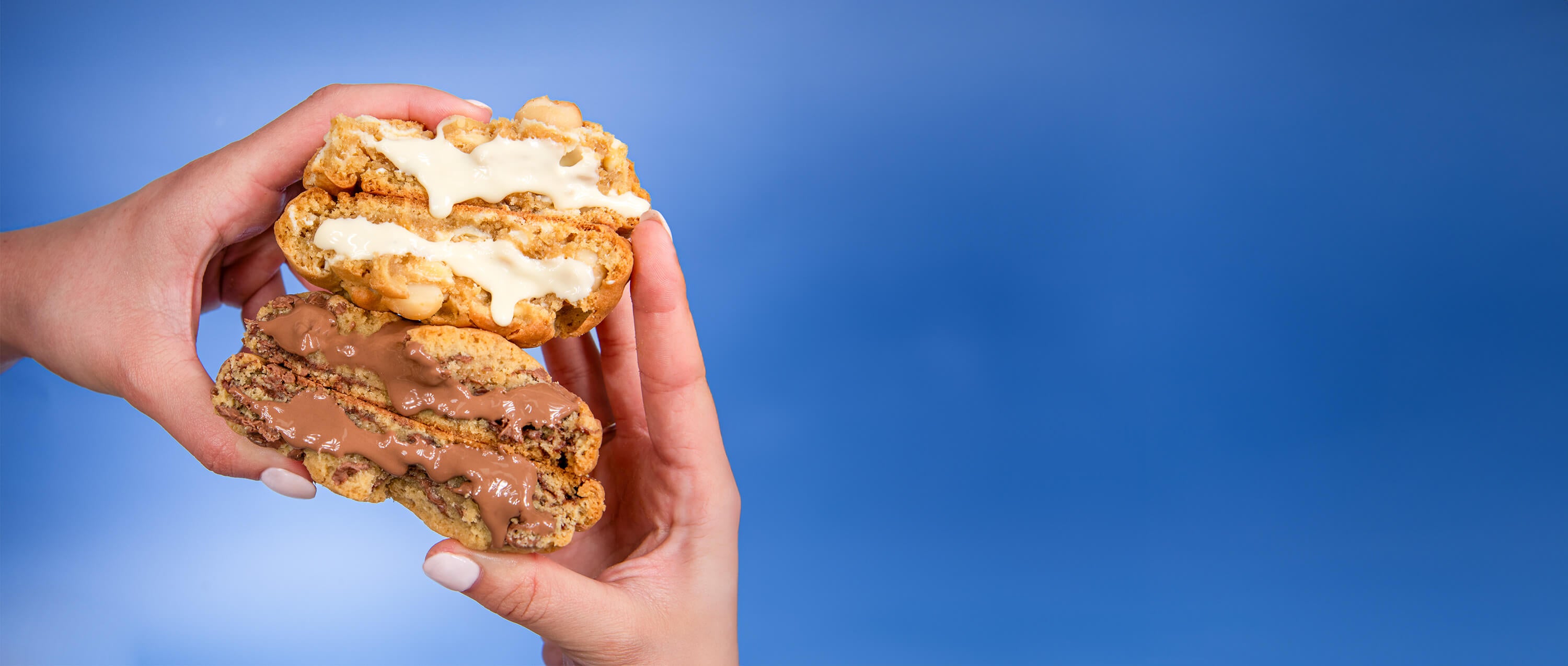 What's our secret? We put love into every cookie, using top-quality ingredients. We stuff them with heavenly chocolate and nuts, creating a taste sensation. The magic doesn't stop there. These cookies aren't just big, they're GIGANTIC. That's New York-style!